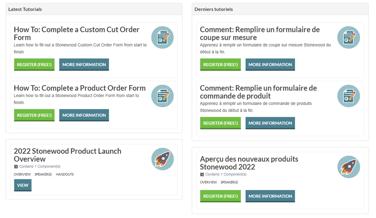 Ces vidéos vous fourniront un tutoriel détaillé sur Comment : remplir un formulaire de commande de produit et Comment : remplir un formulaire de commande de coupe personnalisée en anglais et en français.